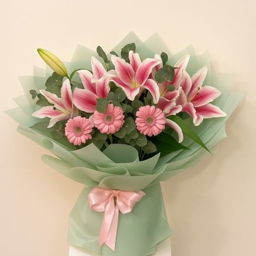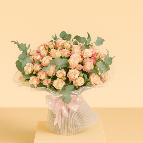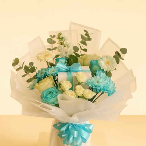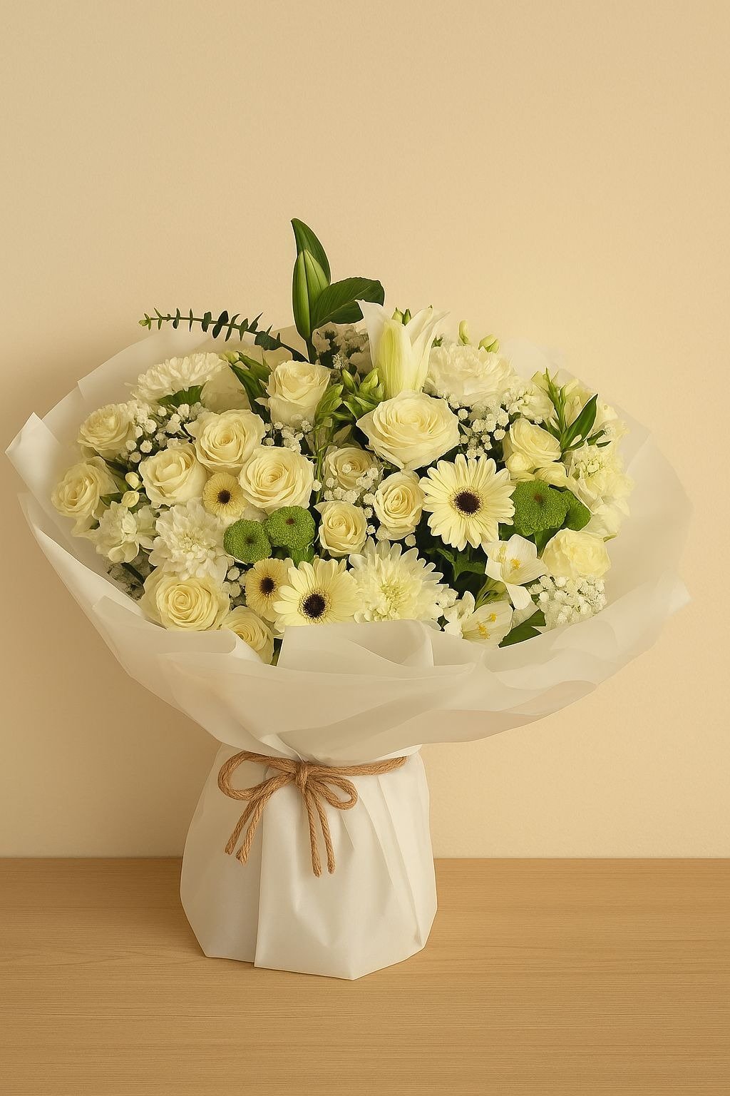 تجربة فاخرة تنتظرك مع باقاتنا الحصرية والمميزة، كل زهرة مختارة بعناية لتعبر عن مشاعر الحب والتقدير، مما يجعل هذه الباقة هدية مثالية لكل مناسبة خاصة، سواء كانت أعيادًا، ذكريات عزيزة، أو حتى لمسة جميلة في يوم عادي. الورود مرتبة ببراعة داخل غلاف أنيق ومعاصر، ليظهر كل تفصيل صغير جمالها الفريد، تتميز الأزهار بتدرجات لونية مبهرة تجمع بين الأحمر العميق، الوردي الناعم، والأبيض النقي، مع لمسات ذهبية وأرجوانية تضفي سحرًا خاصًا يعكس جمال الطبيعة..